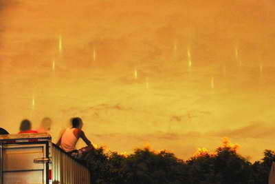 描述:2010年7月10日凌晨零点左右,在环岛路黄厝,天空出现数十条垂直的光线!记者赶到时,光线已渐渐减弱,但记者还是用相机拍下了这一奇异景象。