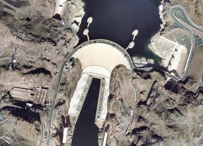 描述:胡佛水坝是美国最高的水坝,深726.4英尺,位于科罗拉多河下游,拉斯维加斯东南端30英里处。胡佛水坝平均每年给内华达、亚利桑那和加州发40亿度的电,够130万人使用。